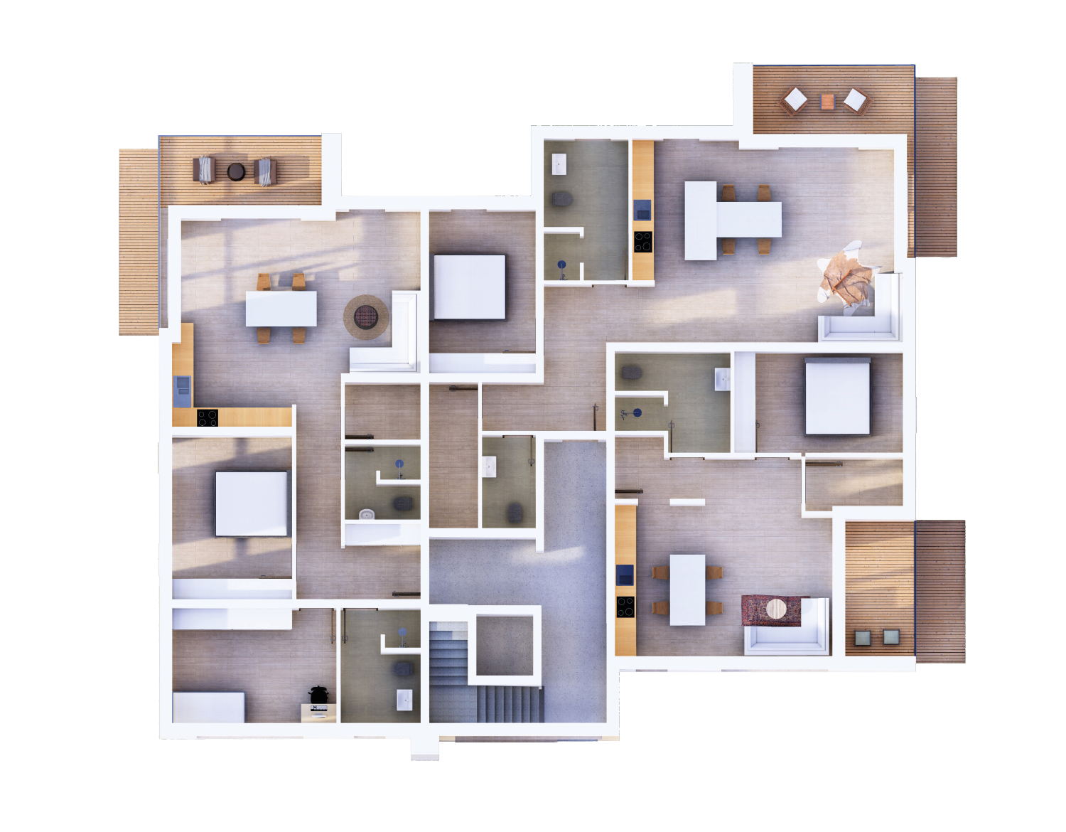 Die Geisenberg Terrassen beeindrucken mit eleganter Architektur, lichtdurchfluteten Räumen und Glasbrüstungen, die freie Ausblicke in die Natur eröffnen.